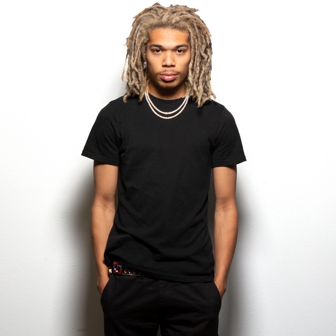 The new King Ice 5mm 14K Gold Tennis Choker Set pays tribute to the multi use trend rooted by prominent hip hop artists since the late '70s. Each choker is plated with a 14K Gold finish and gold prongs frame VVS Diamond Simulates. The chokers measure 18" and 20" for a suitable match when worn together.