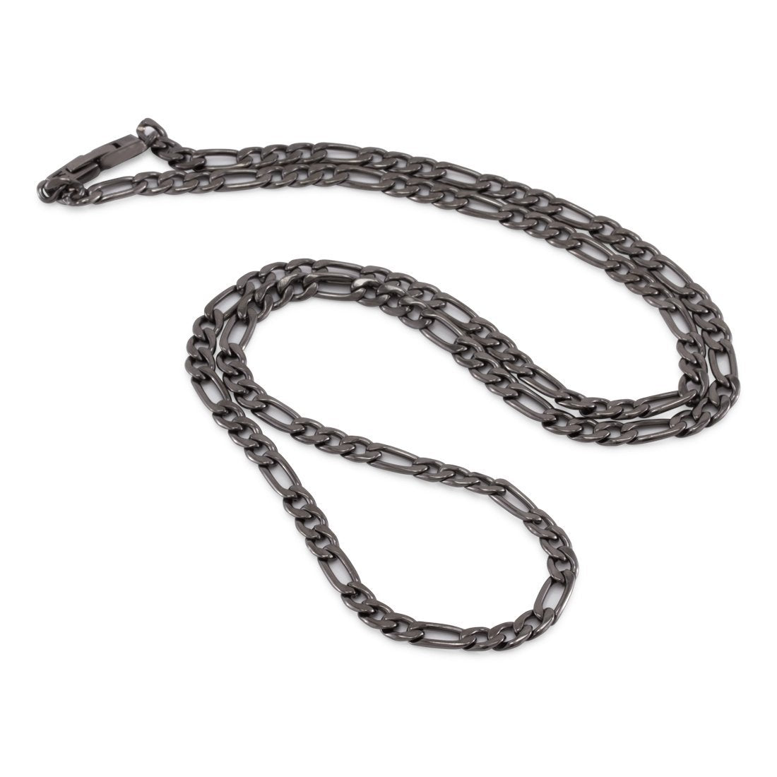 Made from solid stainless steel and plated over Black Rhodium, the Figaro chain provides a streetwear staple--simple, yet elegant.