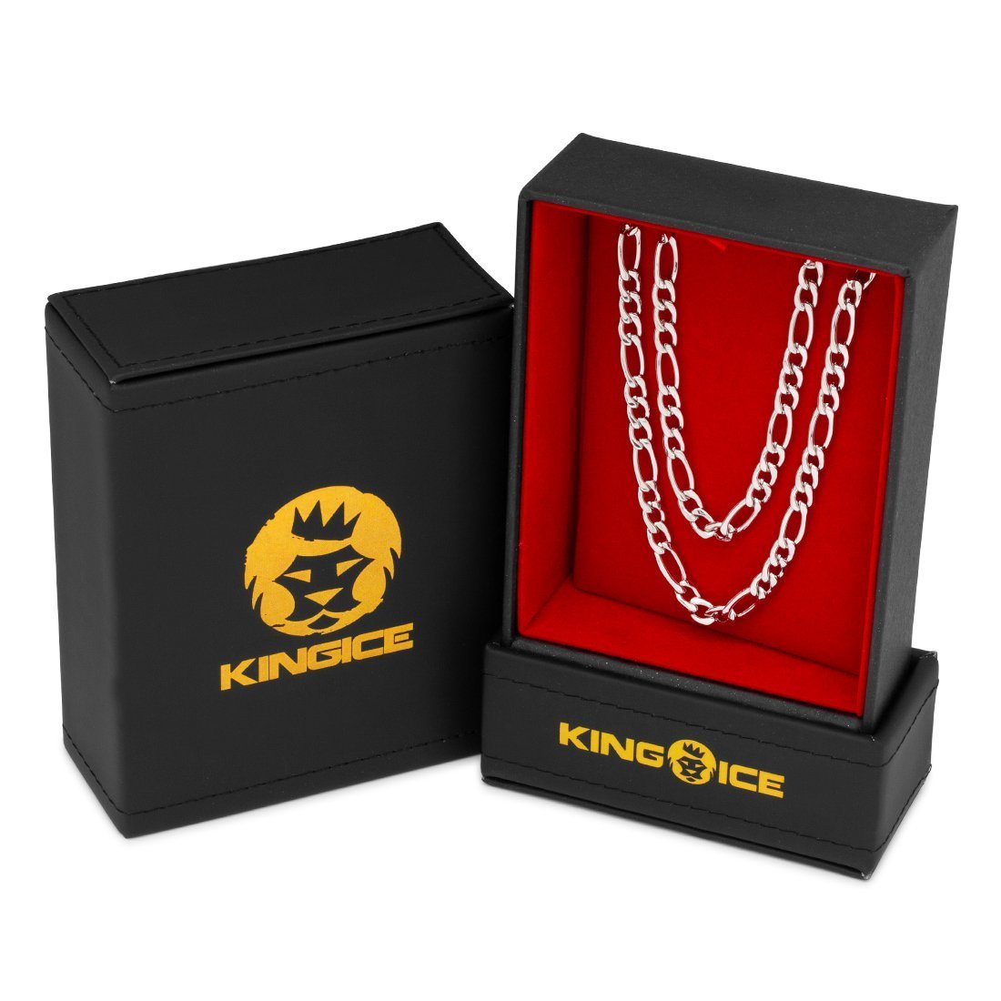 Among the many chains that became popular in hip hop, the Figaro chain is up there. King Ice's new 5mm White Gold Figaro Choker Set comes with two chokers, one 18" and the other 20" for the perfect length match. Its multi link style is plated with white gold for that class look.