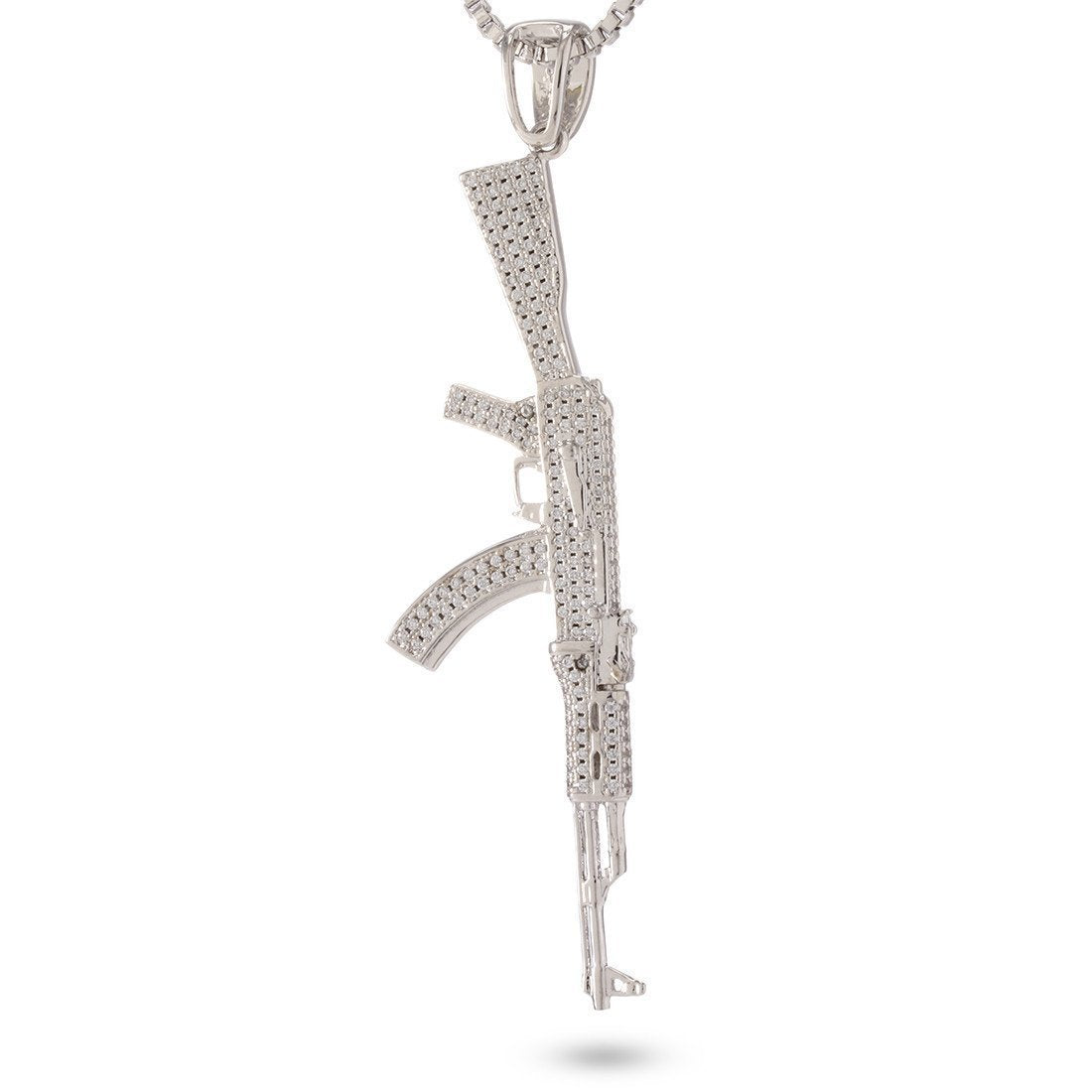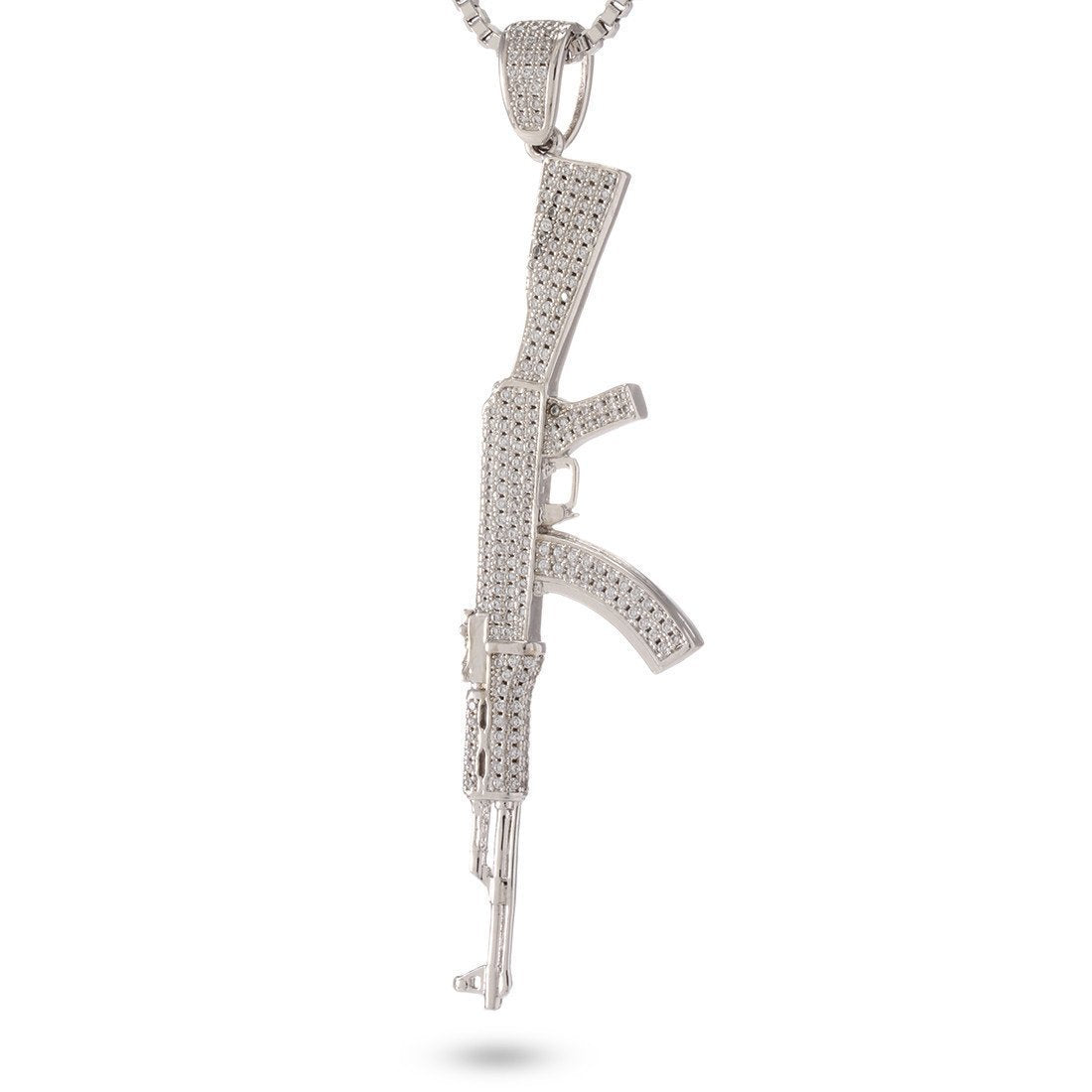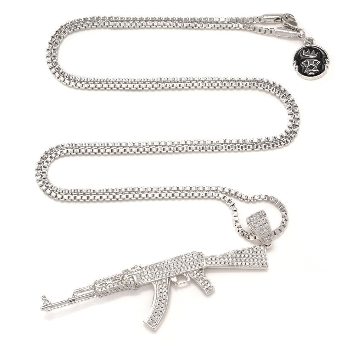 Originally commissioned in 1949, the AK-47 gained widespread use throughout the Soviet Union and its allies. Even after seven decades of use, the rifle remains famous for its durability, accuracy and cheap production. Now, you can pay tribute to the famous AK-47 with this CZ studded version that showcases its famous stock, barrel and design. Meanwhile, the 14K Gold plating adds an iconic streetwear look while the 2.5mm, 20" stainless steel Franco chain gives it a sturdy, classic look.