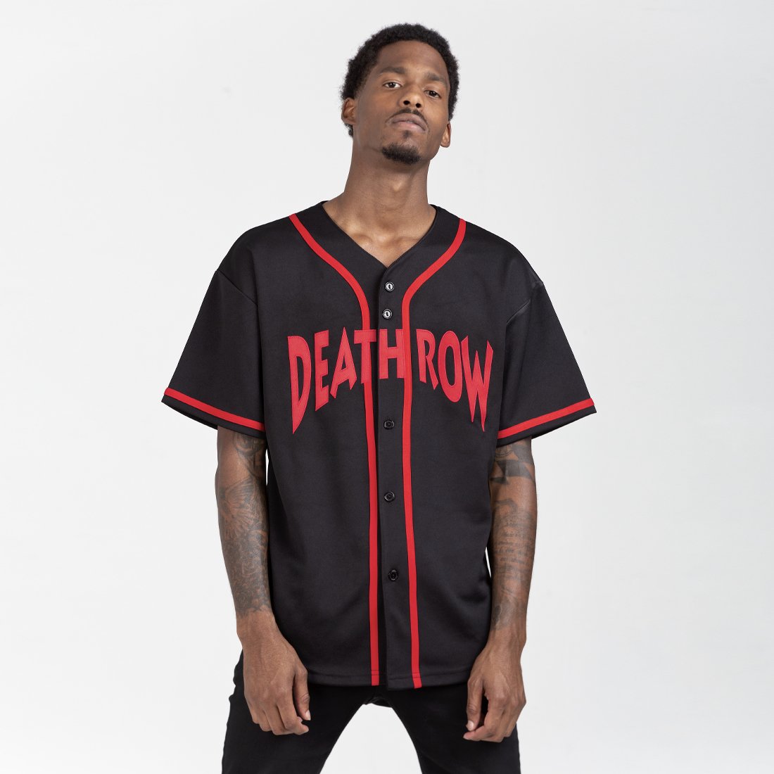 King Ice introduces the first official King Ice x Death Row Records Baseball Jersey. In true West Coast fashion we only use premium fabrics and application as they bring these pieces of history to life. Made in the USA, the 100% polyester material will keep you cool and ensure the jersey will retain its size, color, and shape even through the wash. To prevent any peeling or fading each patch has been securely embroidered, rather than heat sealed, for long lasting quality. Finished with a full-button front and dropped tail, round-cut hem for a genuine fit.