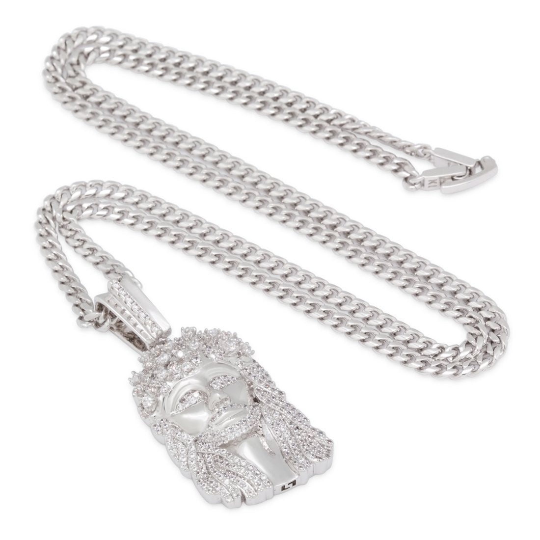 Inspired by the original design, the XL Biggie Jesus necklace is a recreation of the Jesus piece he used to wear. The Biggie Jesus piece comes in three sizes that best fits your style of streetwear. In addition, each pendant is finished with 14K Gold plating or white gold plating and VVS Diamond Simulate stones for a high quality look and feel. A 5mm 20" Stainless Steel Miami Cuban Curb Chain is paired with each necklace.