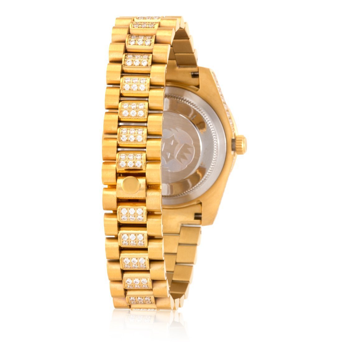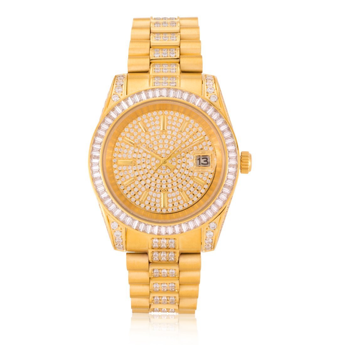 Built for a man with class, The Royal Iced Watch comes lined with handset VVS Diamond Simulate stones to give this watch a high class look and feel. The Royal features a magnified date along side its 3/4" wide band.