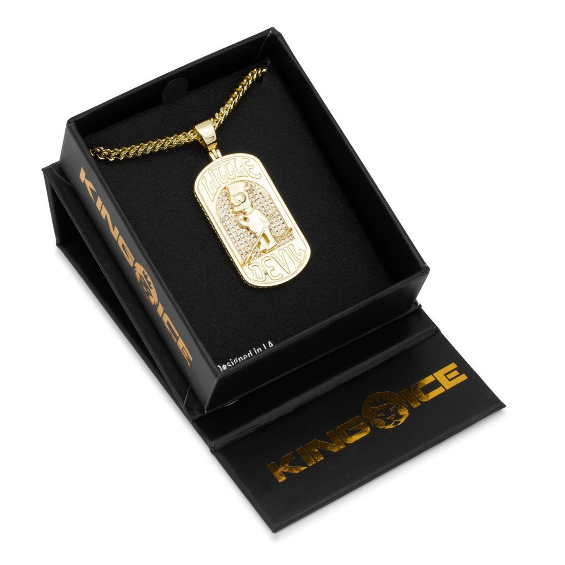 Channeling his inner rebellious side, Bart Simpson remains known for his menacing ways in Springfield. Now, King Ice touts him on a dog tag equipped with AAA, handset stones and 14K Gold plating and white gold plating. Each Simpsons x King Ice piece includes a 2.5mm, 26” Stainless Steel Franco Chain.